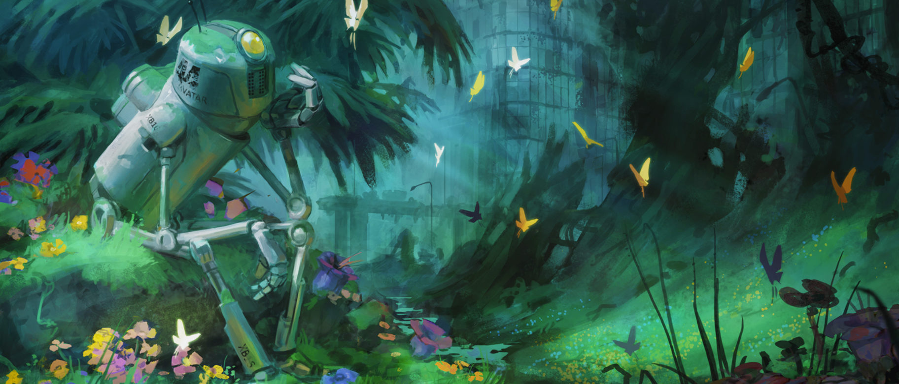 Robot + Papillon is a narrative experience that takes place on Earth a few thousand years from now where nature has covered everything and humanity is now history. This interactive adventure in the first-person features A54, a harmless looking robot, programmed to preserve humanity by exploring this new world.